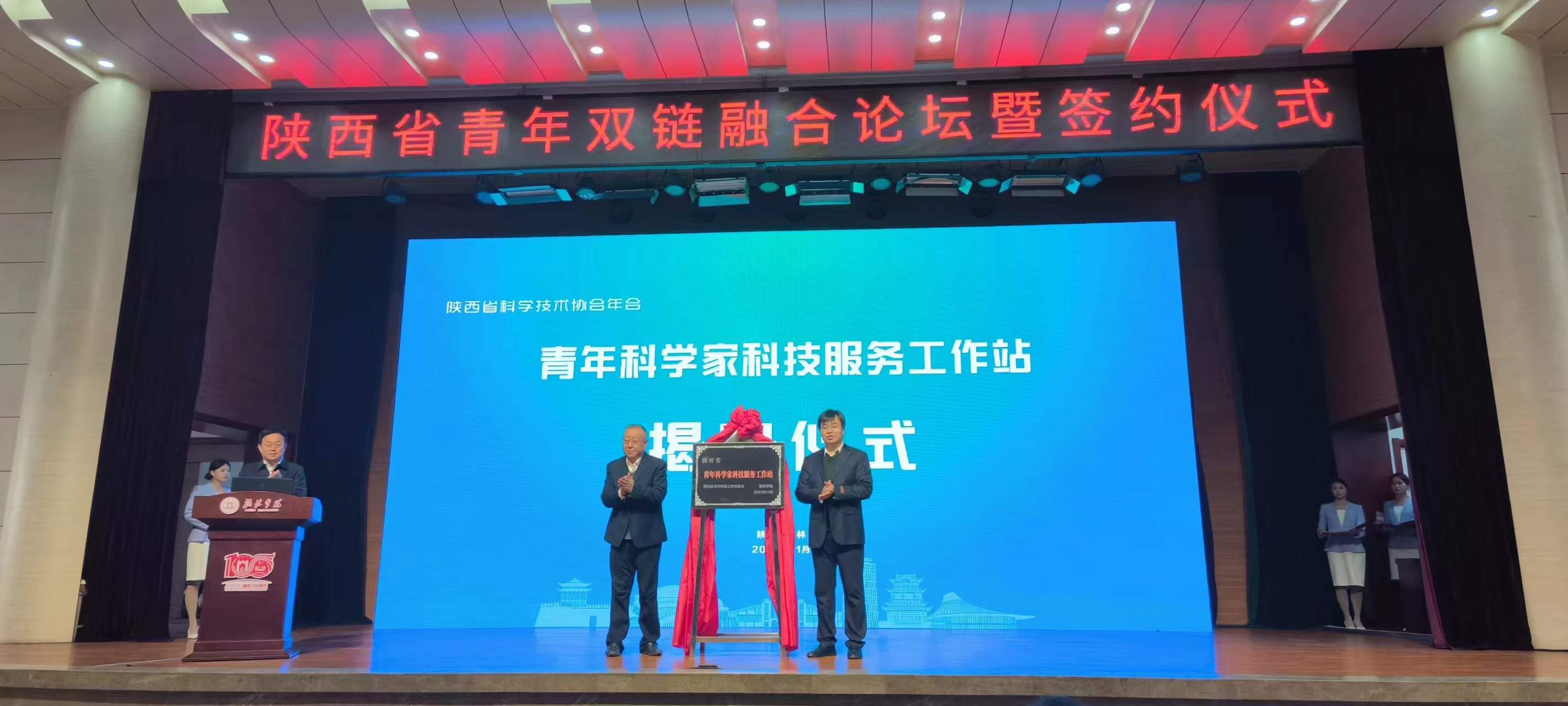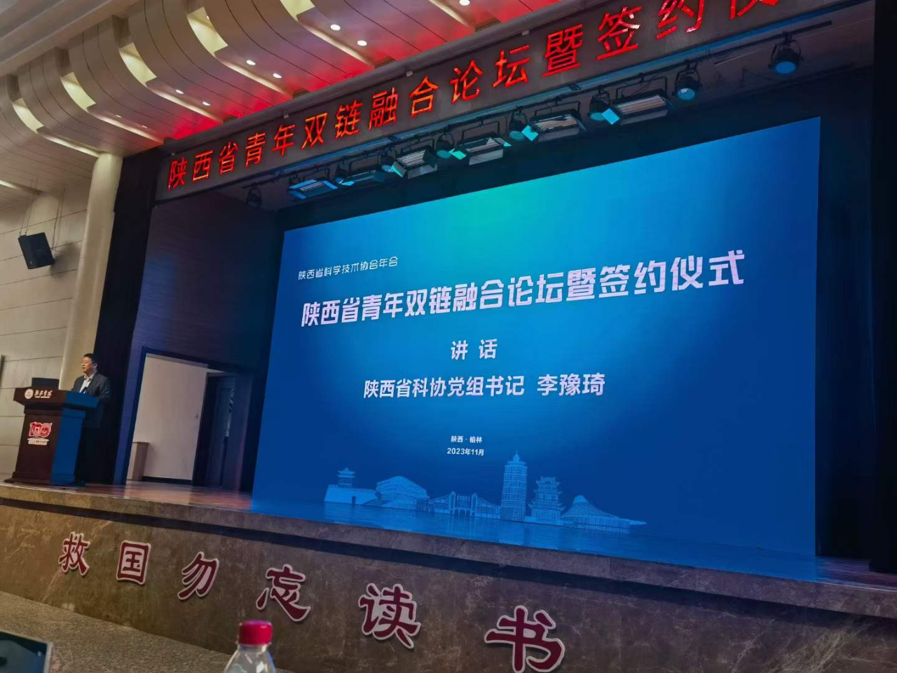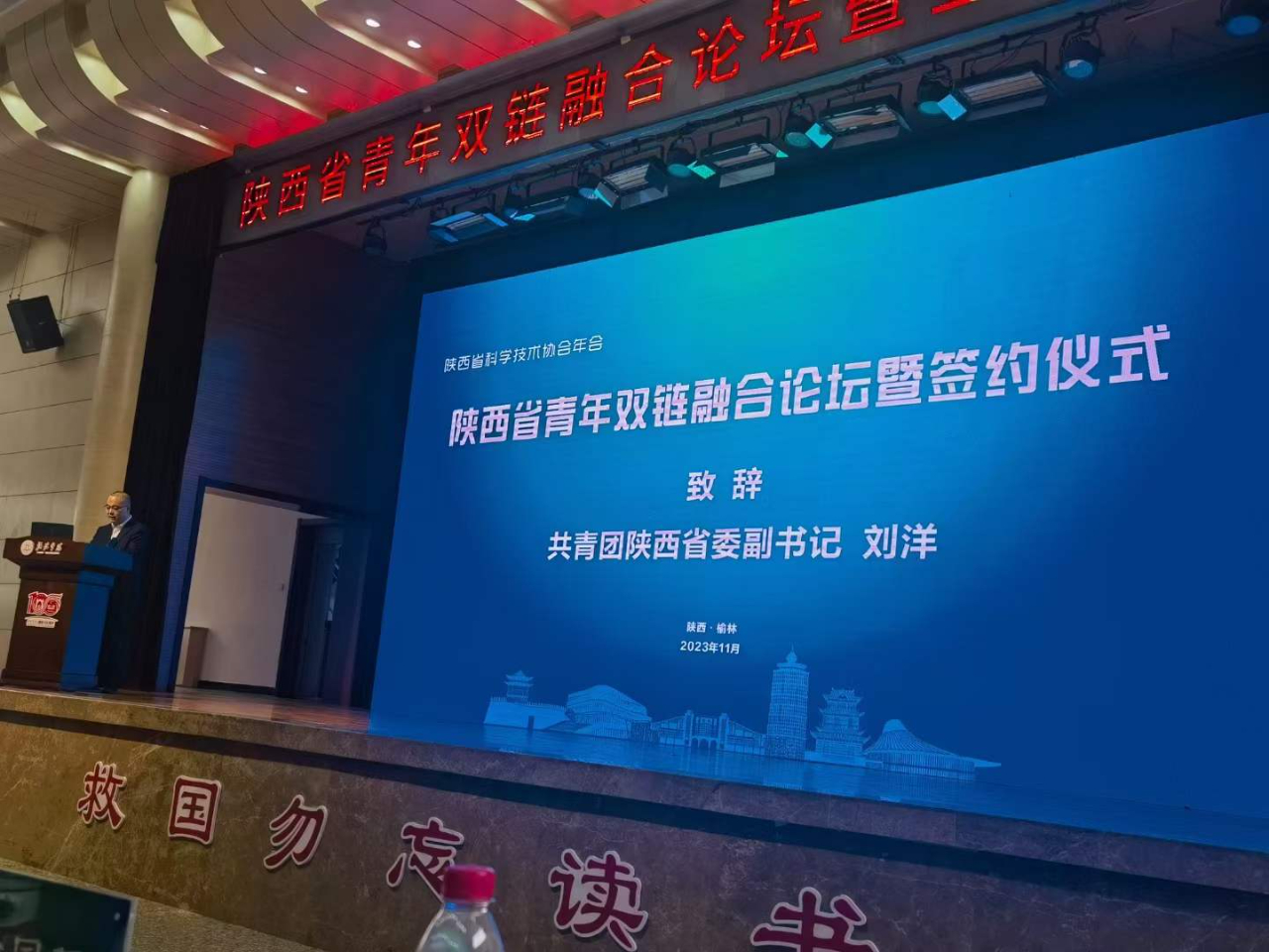 2023年11月4日,由陜西省科學技術協會、共青團陜西省委員會主辦,榆林學院、陜西省青年科技工作者協會、榆林市科學技術協會和共青團榆林市委員會承辦的2023年陜西省青年雙鏈融合論壇暨簽約儀式在榆林市召開。本次論壇是第二屆陜西省科學技術協會年會的重點活動之一。省科協主席、中國工程院院士蔣莊德出席論壇并參加高端對話。中國工程院院士、西安科技大學教授王雙明作主旨報告。省科協黨組書記李豫琦出席并講話。團省委副書記劉洋,榆林市委常委、副市長趙勇,榆林學院校長許云華致辭。榆林學院黨委書記張新柱,省科協黨組成員、副主席呂建軍,榆林學院副校長張曉等領導出席論壇。