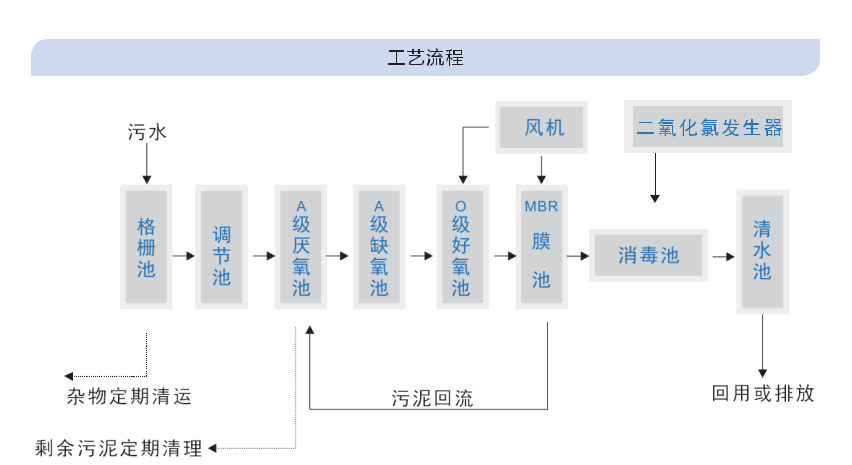 醫院污水來源及成分復雜,含有的病原性微生物、有毒、有害的物理化學污染物和放射性污染等,具有空間污染、急性傳染和潛伏性傳染等特征,不經有效處理會成為一條疫病擴散的重要途徑和嚴重污染環境,我公司采用成熟的“預處理-酸化水解-兩級接觸氧化-二氧化氯消毒"綜合處理的工藝。廢水通過沉砂、篩網過濾預處理后進入調節池,生化處理采用“酸化水解—好氧”,利用微生物多級新陳代謝來降解和去除廢水中的污染物。生化后的污水采用沉淀池進行泥水分離,上清液經強氧化劑消毒,達到殺菌的目的,使之達到排放標準。