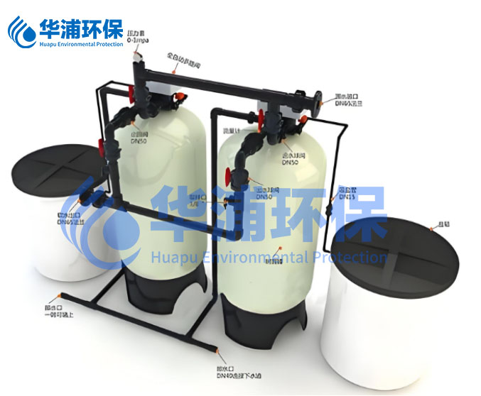 全自動軟化水處理器主要由樹脂罐、全自動多路控制閥和鹽箱三個(gè)主要部分組成。樹脂罐內(nèi)裝填離子交換樹脂,用于吸附水中的鈣、鎂離子;多路控制閥是軟化水處理設(shè)備的控制器,控制系統(tǒng)自動完成運(yùn)行、再生、清洗、排污以及鹽箱補(bǔ)水的循環(huán)過程。鹽箱則用于儲存食鹽,以便在樹脂再生時(shí)使用。
